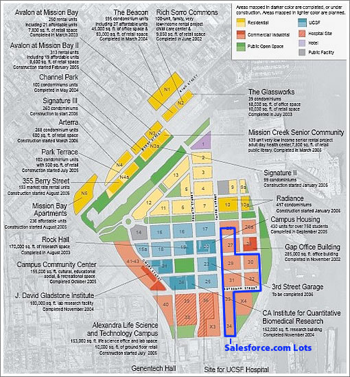 Two of the acquired lots are directly across the street from UCSF’s new Mission Bay Medical Center which is now under construction, thanks in large part to a $100 million donation from Salesforce.com founder Marc Benioff.