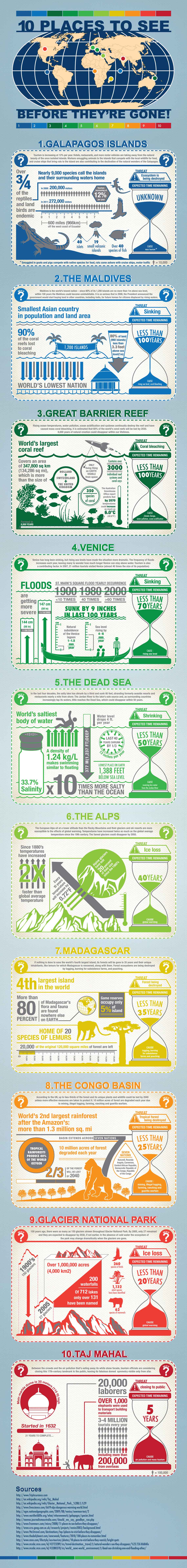 May 30 2012 vacation 10 places to see before they’re gone by dj naka 128 views No Comments 0 Here’s a pretty cool infographic to consider for our (or your) next travel plans. I’m glad we got to cross off #4 with our recent trip to Italy. 🙂