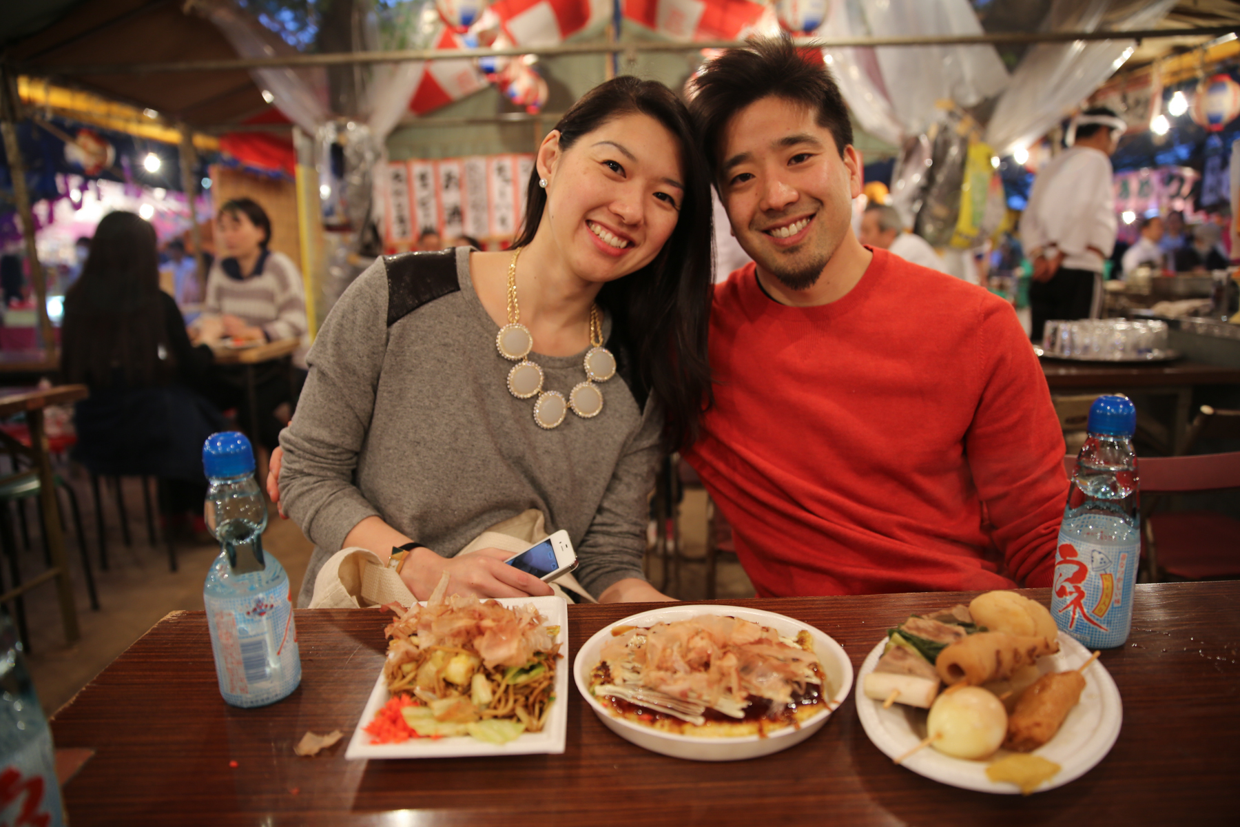 We enjoyed a lot of delicious food: takoyaki, yakisoba, oden, grilled corn, and okonomiyaki just to name a few! When I first made plans to visit Japan to view the cherry blossoms, I couldn’t have imagined us ending up at a huge festival like this.