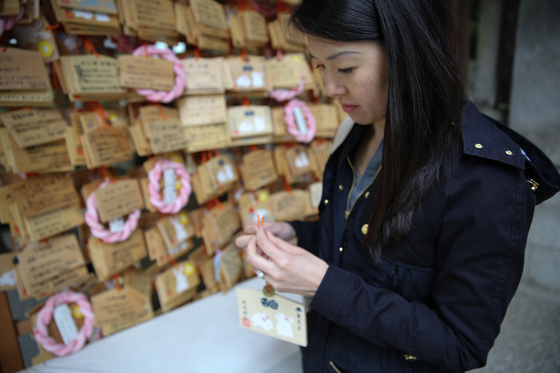 Randomly, we ended up in front of a bunny shrine. What are the chances? We both wrote a prayer card and attached it to the wall. Hopefully they come true!