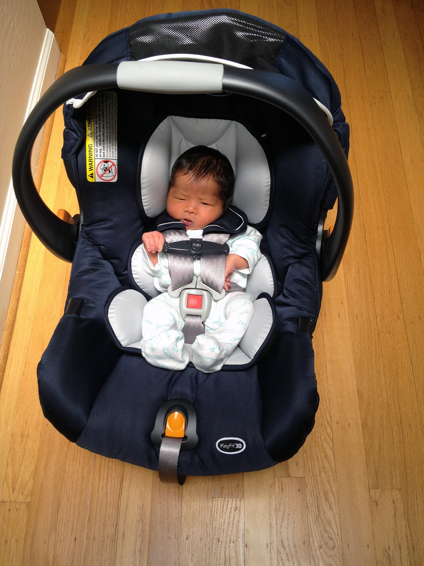 We were discharged from the hospital around 1pm, and Daren got his first chance to try out his car seat for the ride home. Despite a few grumpy looks, he didn’t seem to be too fussy inside the seat so that was a good sign. So far so good…