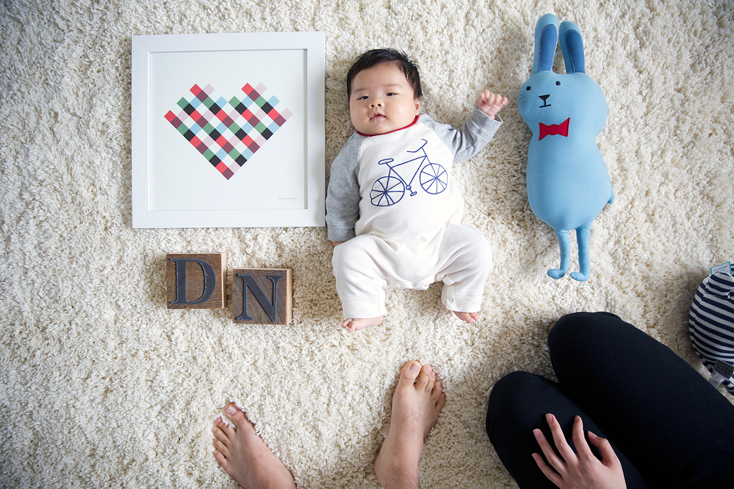 We set up another home-made photo shoot in Daren’s room to celebrate his 2 months! It’s getting tougher and tougher to get him to stay still, but we managed to get a few shots that weren’t too blurry 🙂
