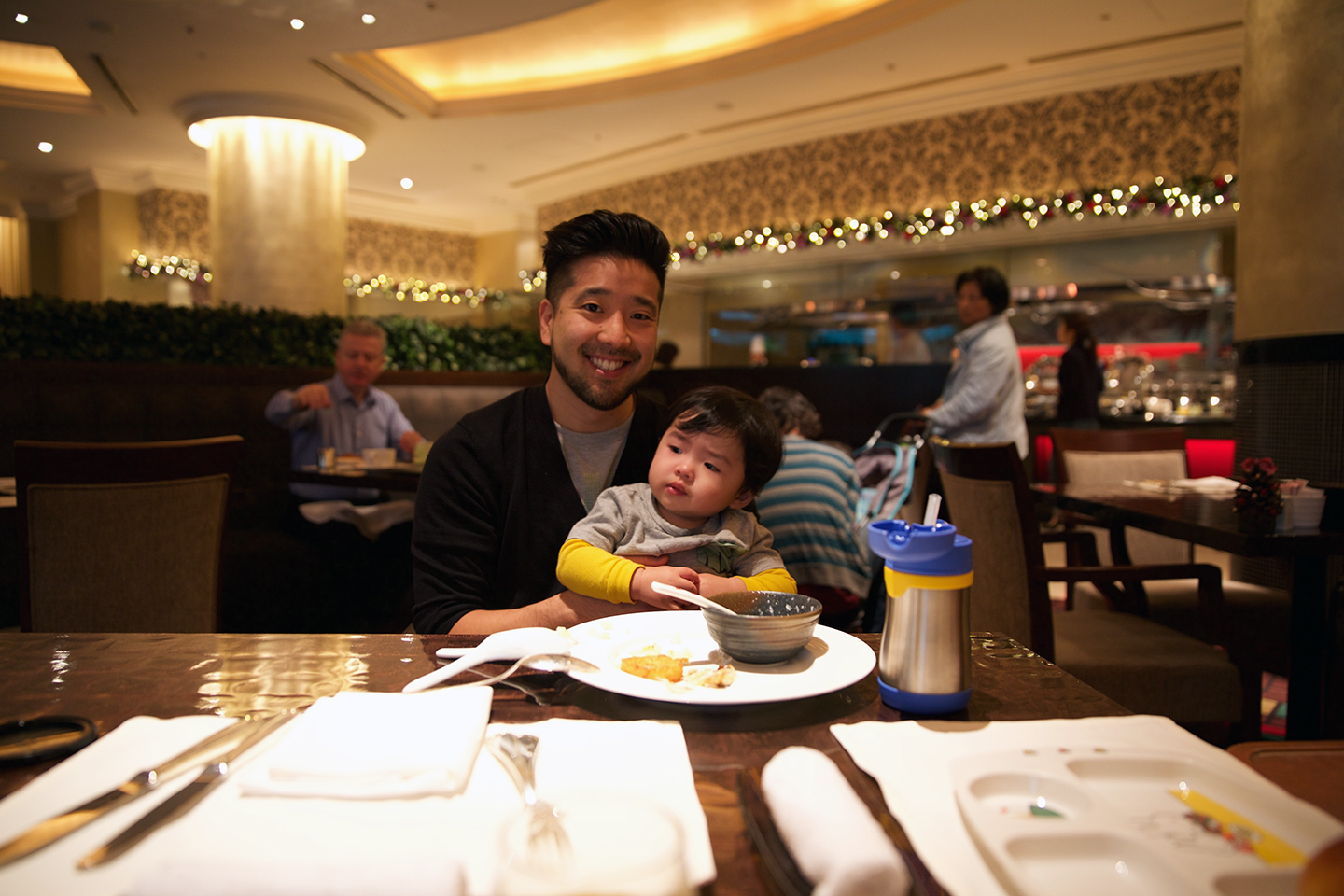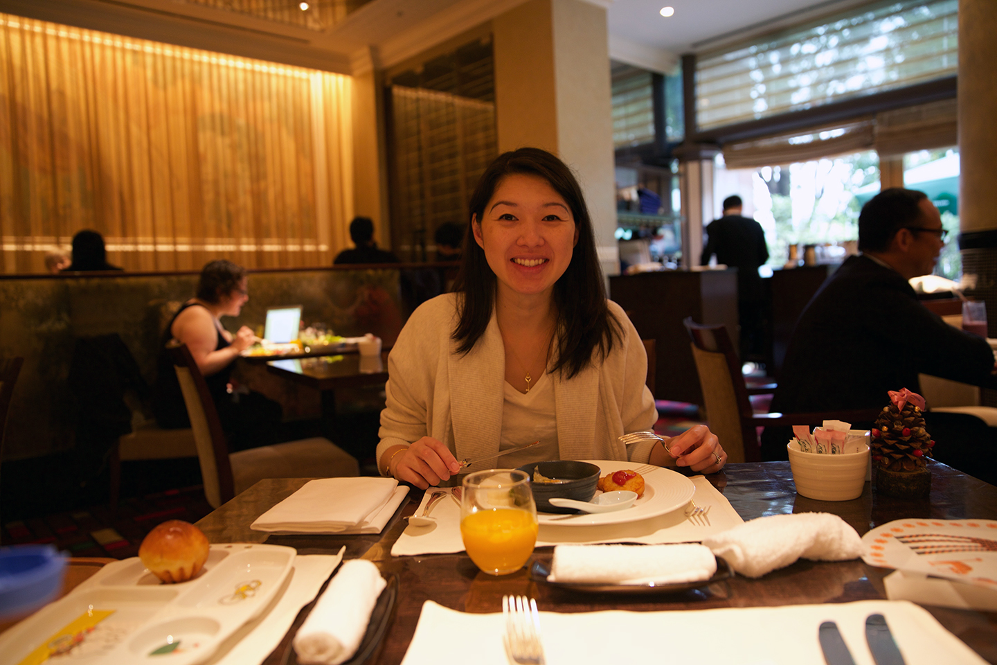 Thanks to my recently received Platinum status, we received free breakfast in the restaurant everyday! Although I would say it wasn’t as extensive as the spread at the Grand Hyatt, it wasn’t too shabby either! Thankfully, Daren had a couple of options that he could eat every day including: hash browns, porridge, fish, bread and fresh fruit.