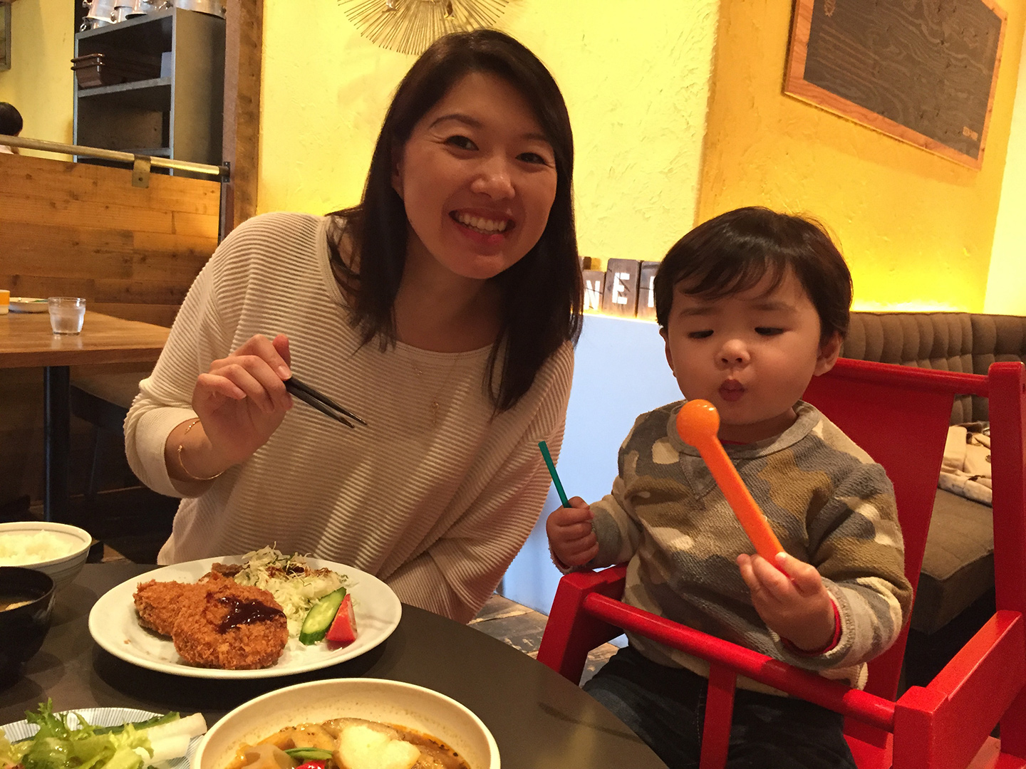 Another baby-friendly restaurant that we absolutely loved was Minoru Diner, which was located on the rooftop terrace area of the Mitsukoshi department store in Ginza. Ginza was a little out of our way from our hotel area, but once we came here we knew it was worth the trip. The restaurant was very busy with lots of other families waiting to get in. We must have waited about 30mins to get a seat, but there was an outdoor rooftop terrace that we enjoyed while we waited for a table. We ordered some potato croquettes and vegetable stew and they were really good. Each meal also comes with a trip to the salad bar, which had a variety of japanese-style items that were all delicious also.