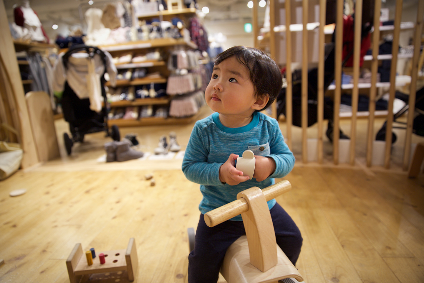 Mujirushi (or more commonly known as Muji) has a giant store in the heart of Shibuya, just a few mins walk outside of the main train station. The entire 5th floor of the store is dedicated to kids/baby clothes, and includes a very nice play area for toddlers! Also on the same floor is a large changing area and nursing station which is really convenient.