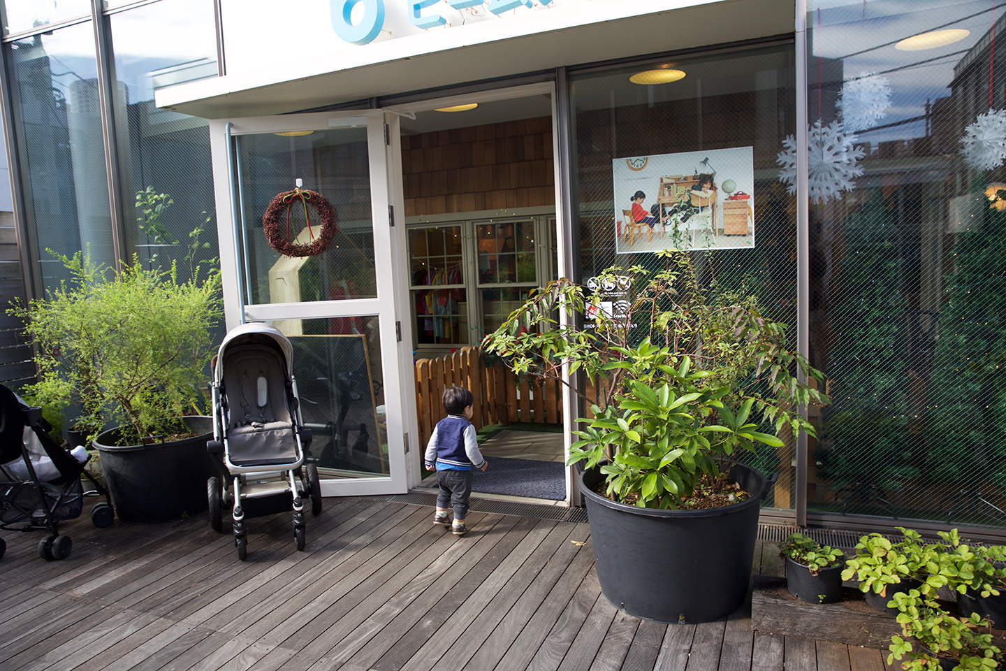 About a 15 min walk from Ebisu station is Daikanyama: a cute, hip little area of Tokyo with a number of boutique shops all tucked away within a series of small narrow streets. And within Daikanyama, there is an area called “T-site”, that has a number of baby-friendly stores and restaurants. Kodomo Beams was one of our favorite stores that sold a lot of cute baby clothes, and the Bornelund Toy store was a great place to let Daren run around and play with all kinds of toys. There was also Ivy Place, a really cool baby/stroller friendly cafe that served some yummy food. Although the shopping seemed a little pricey in this area overall, Daren had a fun time window shopping and running around in this very baby-friendly environment!