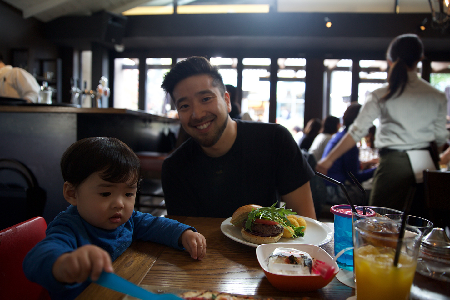 Tucked away in Roppongi Hills is this super cool breakfast spot! Organic eggs, fresh juices, and a super kid-friendly environment made this place one of our favorites. There were also baby books and crayons for Daren that kept him busy while we ate in peace. Score! 🙂 The cafe was within walking distance to our first hotel (Grand Hyatt), so that was a plus also!