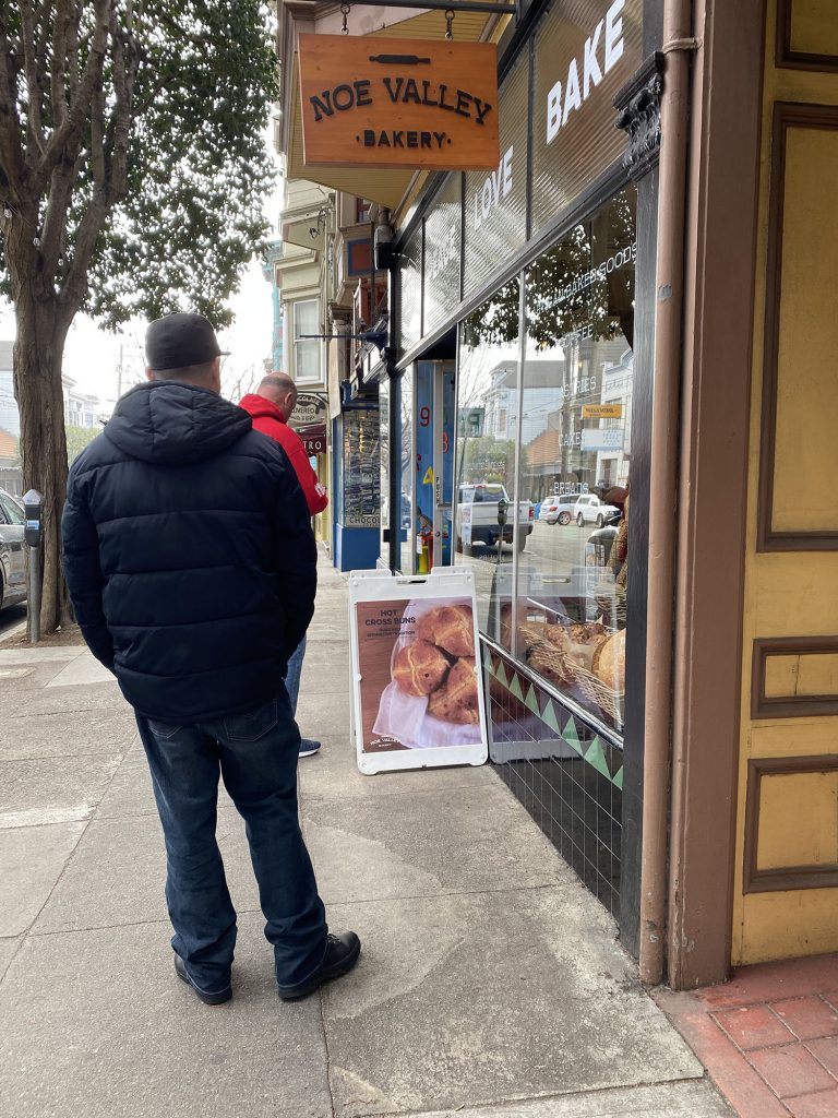The drive to Noe Valley bakery is about 5 mins from our house just down the hill. Everything along the drive this morning seemed pretty normal as usual. The Safeway parking lot was crowed and full of shoppers as I drove by, and there were a few people out and about either going for walks or jogs.
