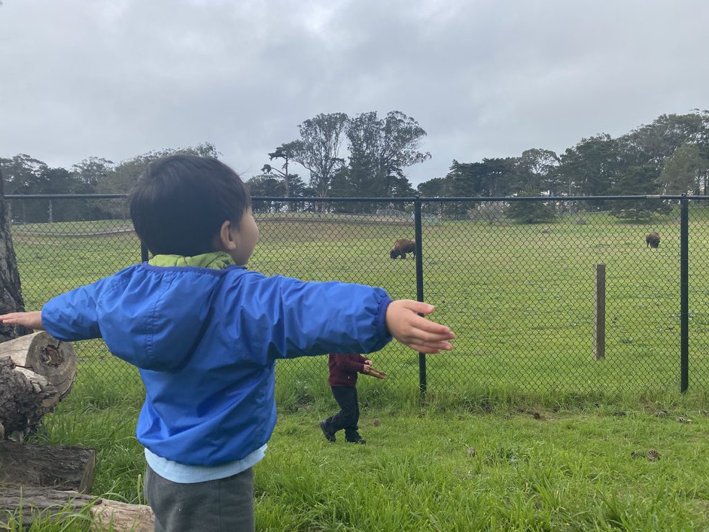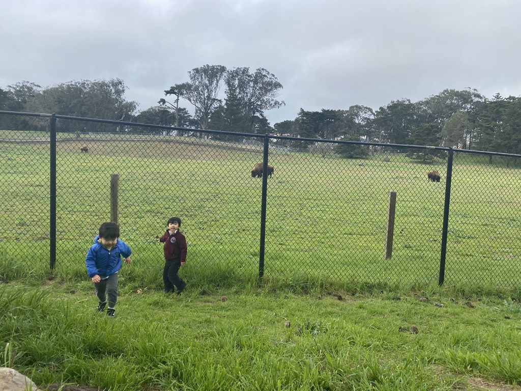 On the way back from picking up the food, we made a quick side-trip to Golden Gate Park to say hello to the bison! Daren and Jordan really really loved seeing the bison. They kept saying hello to the animals expecting them to respond back, haha 🙂